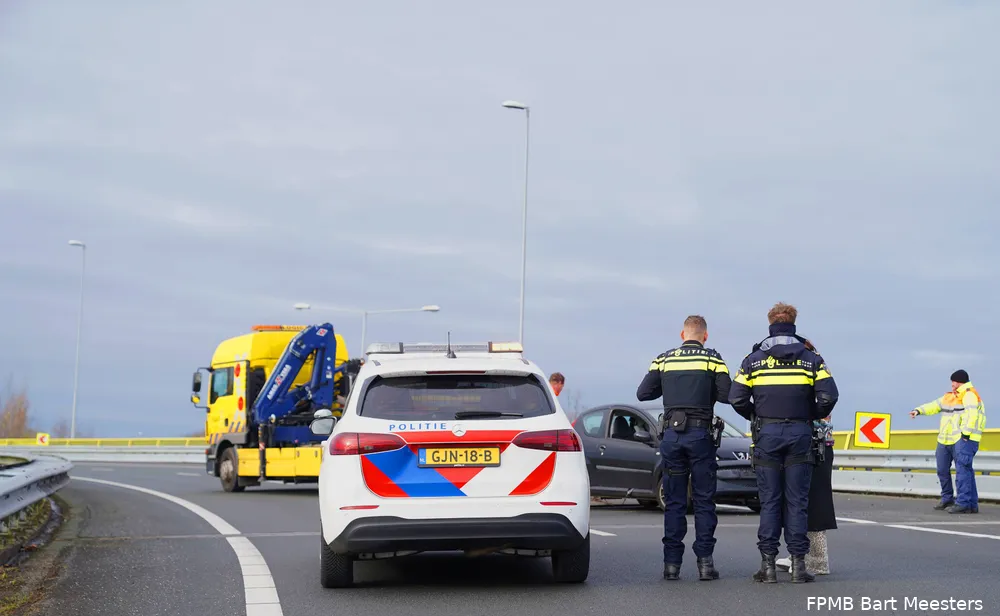 De verbindingsweg was tijdelijk afgesloten. Het beschadigde voertuig is later door een berger afgevoerd.