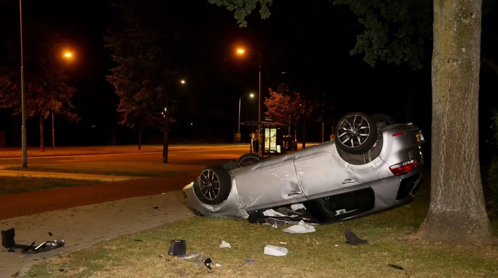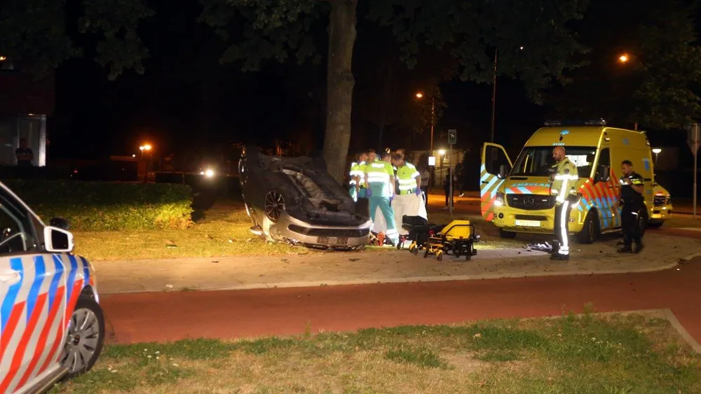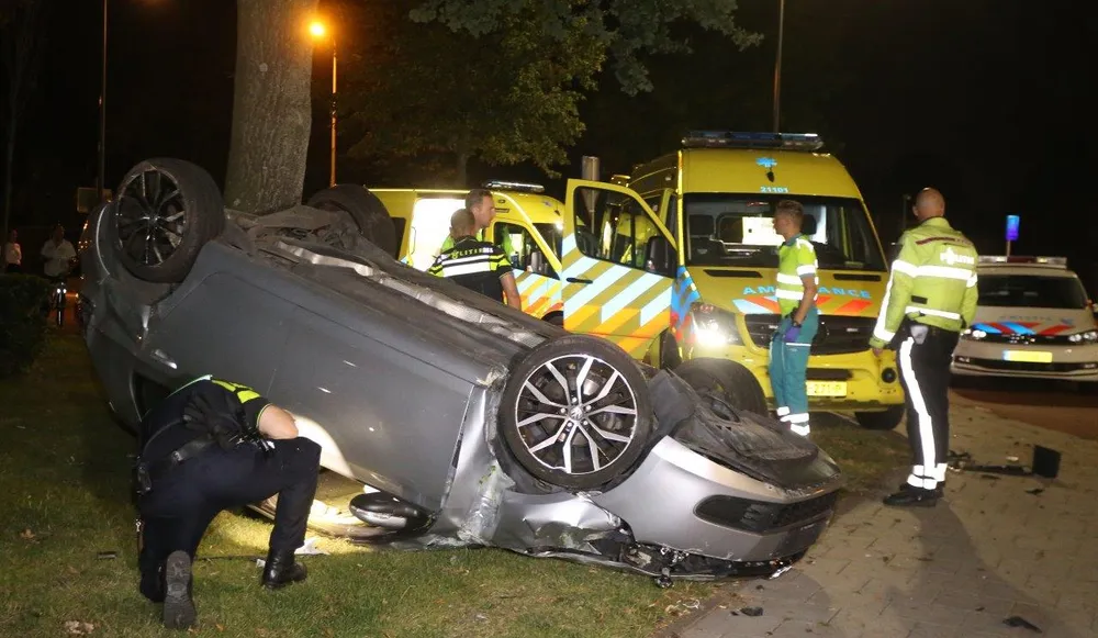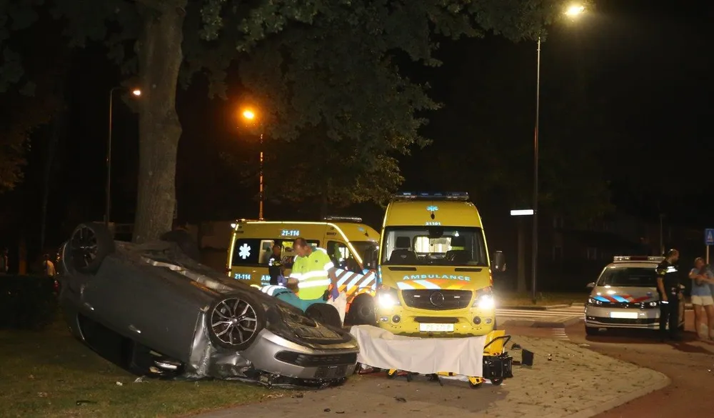 In het voertuig zaten twee mannen. De bijrijder van de auto raakte bij het ongeval volgens de politie ernstig gewond, en werd per ambulance overgebracht naar het ziekenhuis. De bestuurder van de auto werd ter plaatse door een medewerkers van de ambulancedienst nagekeken, maar bleek slechts lichte verwondingen te hebben. Nadat de bestuurder door de medewerkers was nagekeken, werd hij door de politie geboeid overgebracht naar het politiebureau. Volgens een politieagent ter plaatse, waren er sterke aanwijzingen dat de man mogelijk onder invloed van alcohol van drugs achter het stuur zat. Bij de man zal bloed worden afgenomen, wat gecontroleerd zal worden op alcohol en drugs. Naast het voertuig lag in het gras een lege bierfles, welke vermoedelijk uit de auto kwam.