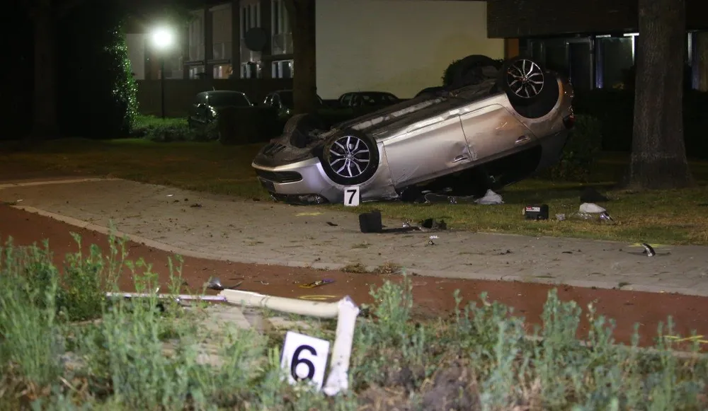 Een auto met daarin twee personen, raakte op de rotonde De Harendonkweg met de Sint Teunislaan van de weg en kwam op zijn kop in het gras langs de weg tot stilstand. De auto de Harendonkweg komende vanaf de Bruistensingel. Vermoedelijk heeft het voertuig met zeer hoge snelheid gereden en is de bestuurder van het voertuig ter hoogte van de rotonde de macht over het stuur verloren/ het voertuig is vervolgens recht over de rotonde gegaan waarbij een verkeerspaal werd gerand. Uiteindelijk kwam de auto in het gras langs de weg tot stilstand.