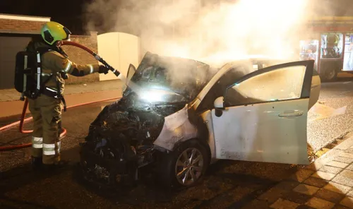 maar kon niet voorkomen dat de auto aan de voorzijde volledig uitbrandde.