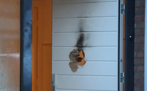is zaterdagavond een explosie geweest. De voordeur raakte daarbij beschadigd.