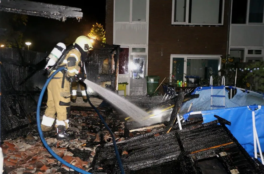 Een schuur is in de nacht van donderdag op vrijdag in vlammen op gegaan aan de Achtste Donk in Den Bosch. Rond één uur in de nacht kreeg de brandweer de melding van de schuurbrand binnen. Bij aankomst van de brandweer kwamen de vlammen meters hoog uit de schuur. De brandweer zette alles op alles om overslag naar de woning te voorkomen, dit had gelukkig resultaat. De schuur bracht het er minder goed van af en ging geheel verloren door de brand.