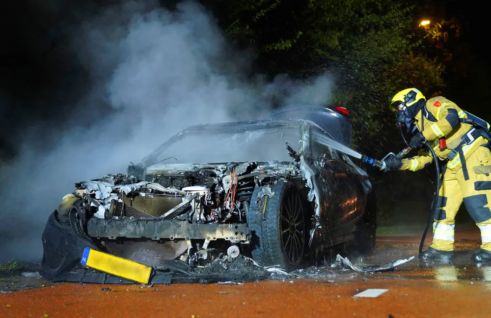 Toch werd de wagen verwoest door de vlammen. Dus zat er voor een bergingsbedrijf niets anders op dan de auto afvoeren