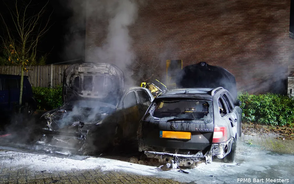 Volgens buurtbewoners zagen zij twee mannen één van de auto’s in brand steken. Het tweede voertuig, dat ernaast geparkeerd stond, vloog vervolgens ook in brand doordat het vuur oversloeg. De brandweer had het vuur snel onder controle, maar kon niet voorkomen dat beide auto’s verloren gingen. Ze stonden op ongeveer twee meter afstand van de woningen. Een derde auto, die op enkele meters afstand geparkeerd stond, liep door de hitte forse schade op.