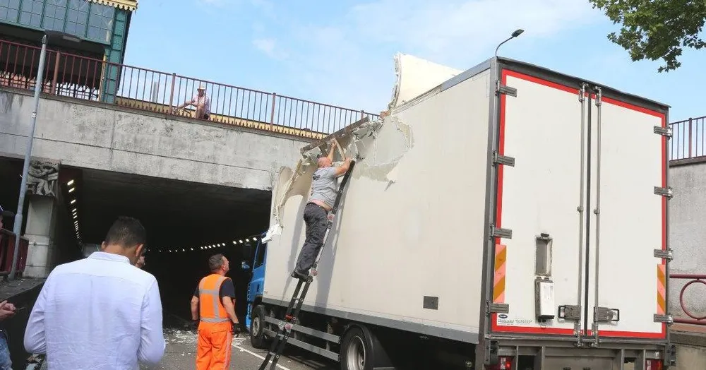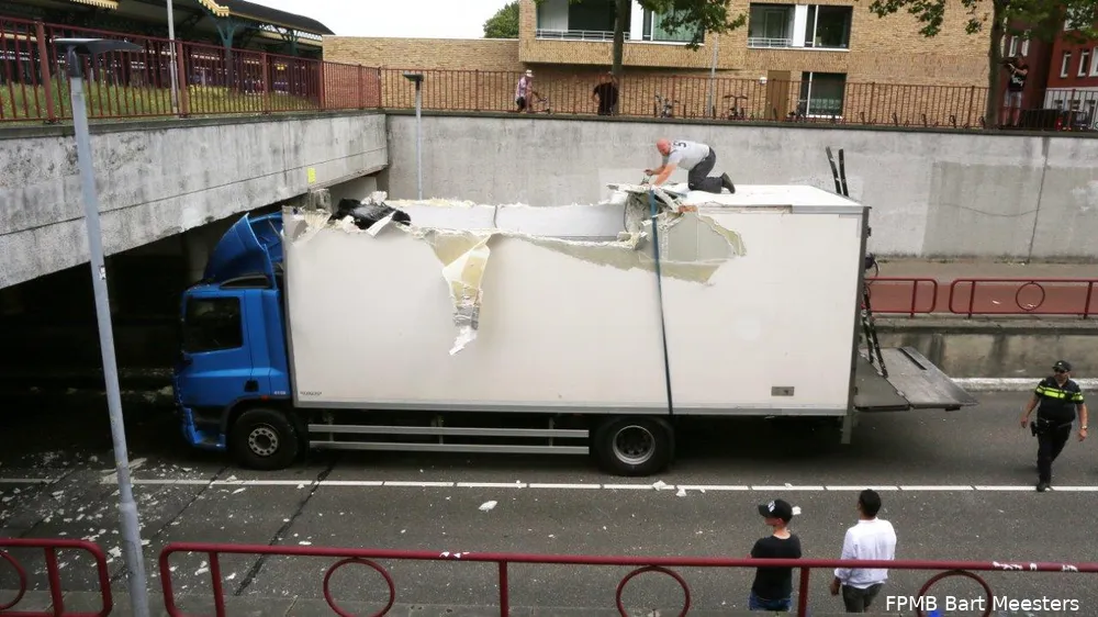 Een vrachtwagenchauffeur heeft woensdagmorgen zijn dak eraf gereden bij de Stationstunnel in Den Bosch. De wagen was te hoog om door de tunnel te rijden, maar daar kwam de bestuurder te laat achter.
