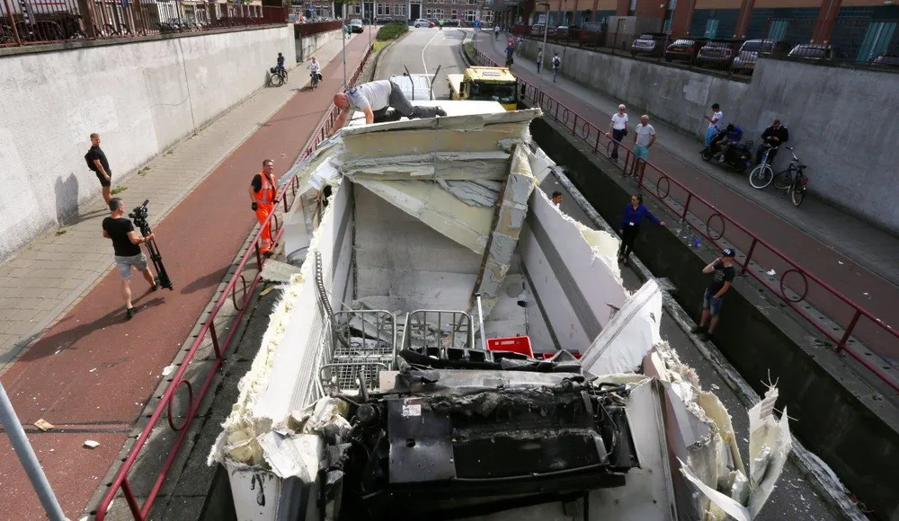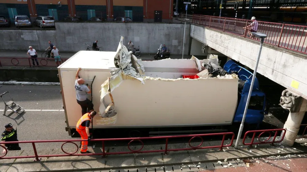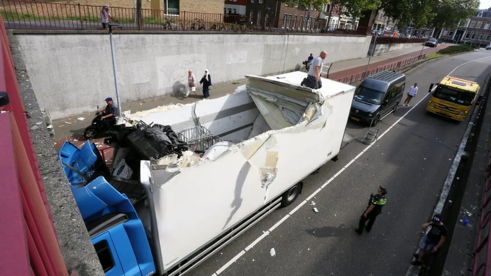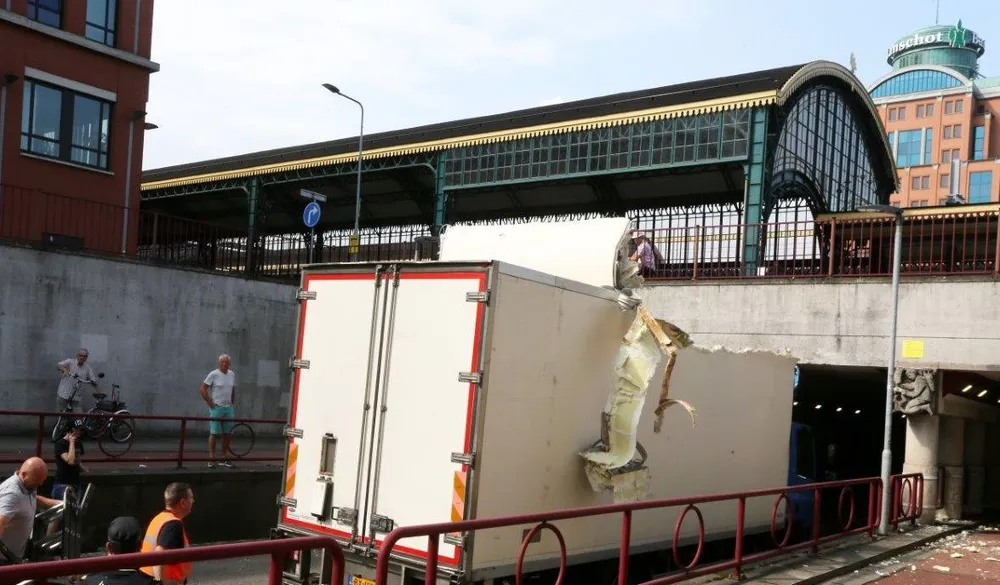 De chauffeur heeft volgens een getuige zelf de vrachtwagen weer los gekregen door naar achteren te rijden. De Stationstunnel werd in beide richtingen tijdelijk afgesloten. Er lagen veel brokstukken in de tunnel en op de weg. Dat is inmiddels weer opgeruimd.