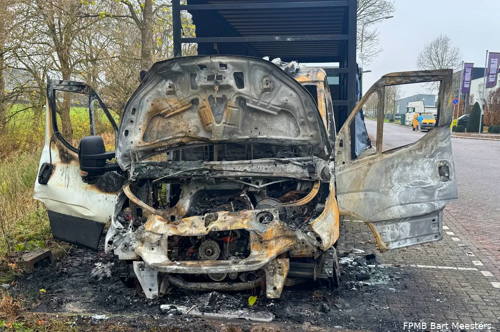 Een bergingsbedrijf is ingeschakeld om het voertuig af te voeren. De politie heeft de brand in onderzoek.