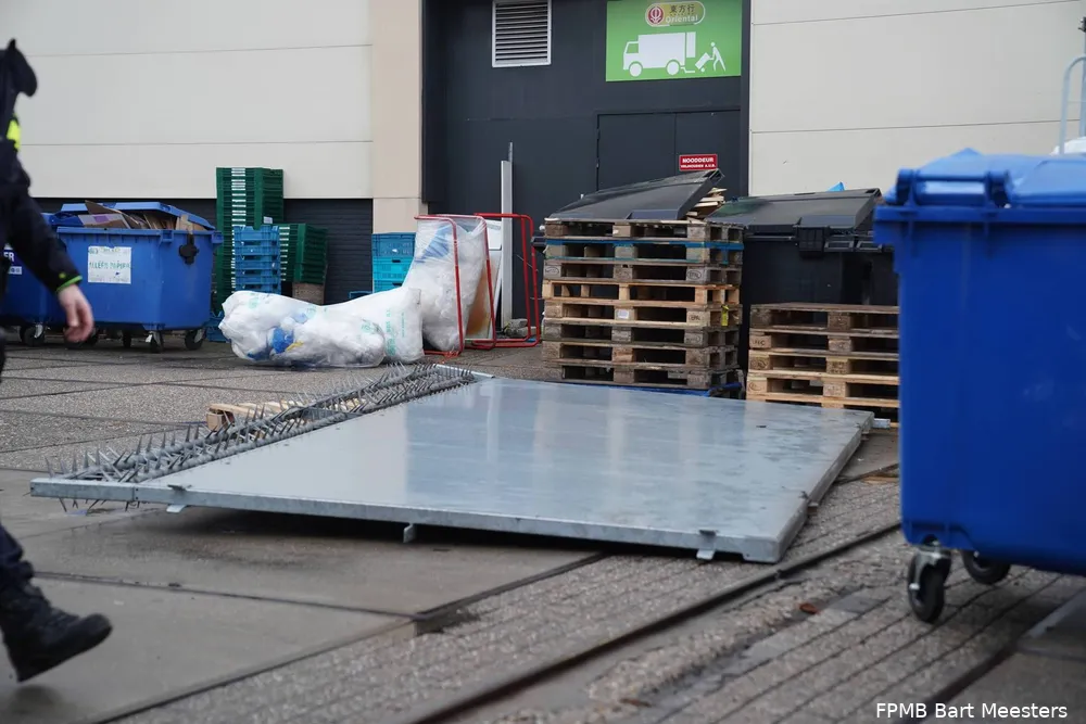 Het laad- en losterrein is afgezet door de politie. Op de locatie zijn onder meer een Albert Heijn, een Action en een Nettorama gevestigd. De ingang van het laad- en losterrein wordt afgesloten door twee grote stalen poorten van zo’n 2,5 meter hoog en een meter of vier breed.