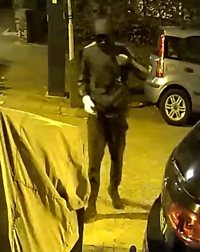 Noremborghstraat komt de dader aanlopen. Hij heeft iets bij zich, dat