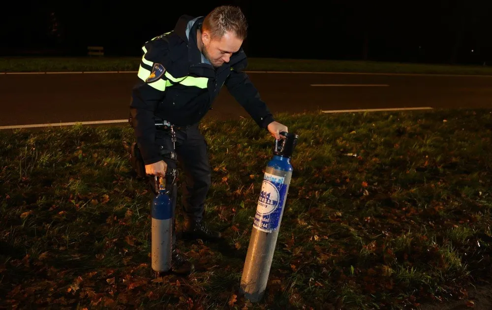 Naar eigen zeggen zat de vrouw op haar telefoon naar de navigatie te kijken, waarna de vrouw met haar auto van de weg raakte en in de sloot te recht kwam. Tijdens het takelen van de auto werden in het voertuig twee lachgas cilinders aangetroffen. Het ging om een grote en een kleine cilinder. Ook lagen onder het stuur diverse ballonnen. De politie trekt het verhaal over de navigatie dan ook zeer in twijfel en heeft het vermoeden dat de vrouw ballonnen met lachgas aan het inhaleren is geweest, waarna ze met haar auto van de weg raakte.