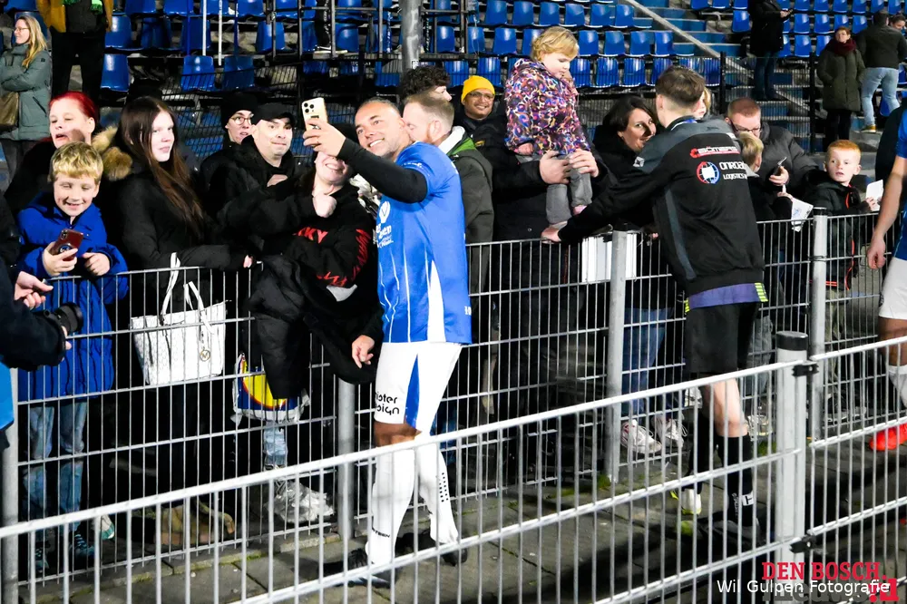 De uitslag was bijzaak. De sfeer in het stadion was warm en uitgelaten, met applaus voor beide teams. Na het laatste fluitsignaal trokken spelers massaal richting de tribunes voor selfies en handtekeningen. Lachende gezichten, vermoeide benen en een gedeeld gevoel van trots overheersten.
