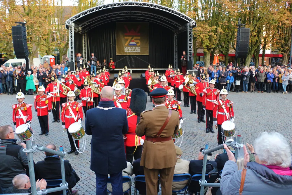 Afsluiting Bosch en Welsh 75 jaar vrijheid gemeente ’s-Hertogenbosch. Een grootse muzikale ceremonie waaraan talrijke harmonieën, fanfares en drumfanfares hun medewerking aan hebben verleend.