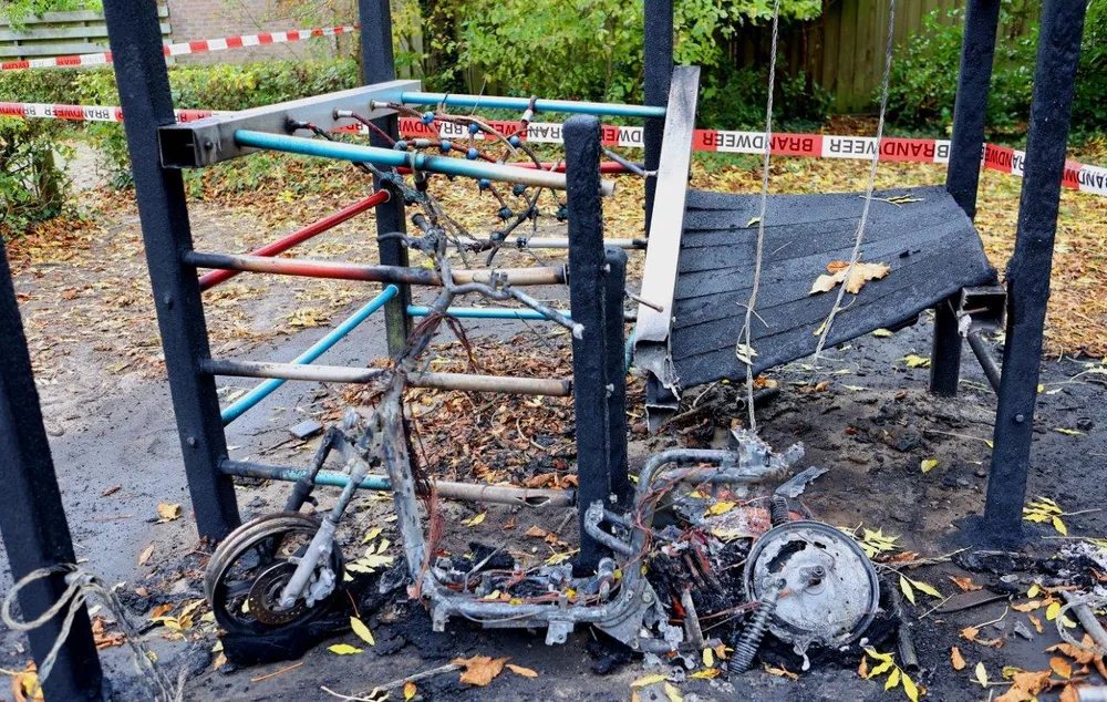 In Rosmalen zijn zaterdagnacht drie elektrische Go Sharing-deelscooters in vlammen opgegaan. Volgens de brandweer zijn hier nu in korte tijd al tien scooters door brand verwoest. Bart Meesters van FPMB maakte op zondag een aantal foto's bij daglicht op zondag