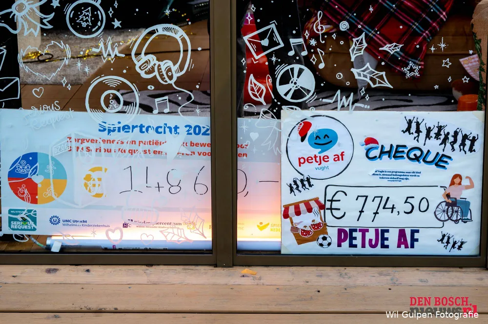 De bijdragen varieerden van enkele euro’s van jonge kinderen die hun spaarpotje hadden geleegd voor het goede doel #SpierenVoorSpieren, tot grotere acties, zoals die van de ‘harde kern’ van FC Den Bosch, die gezamenlijk een mooi bedrag wist op te halen.