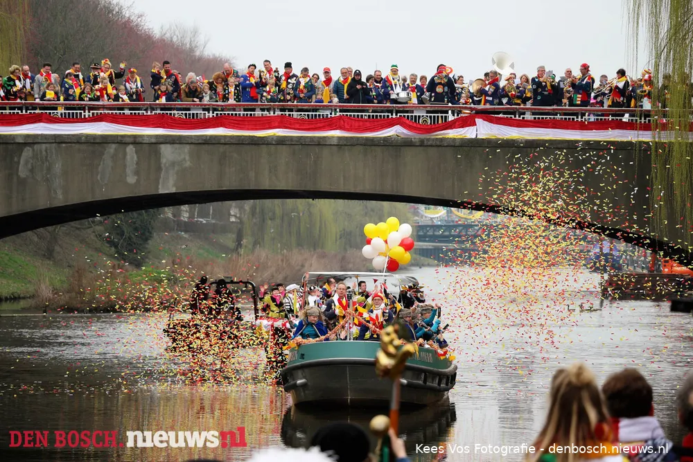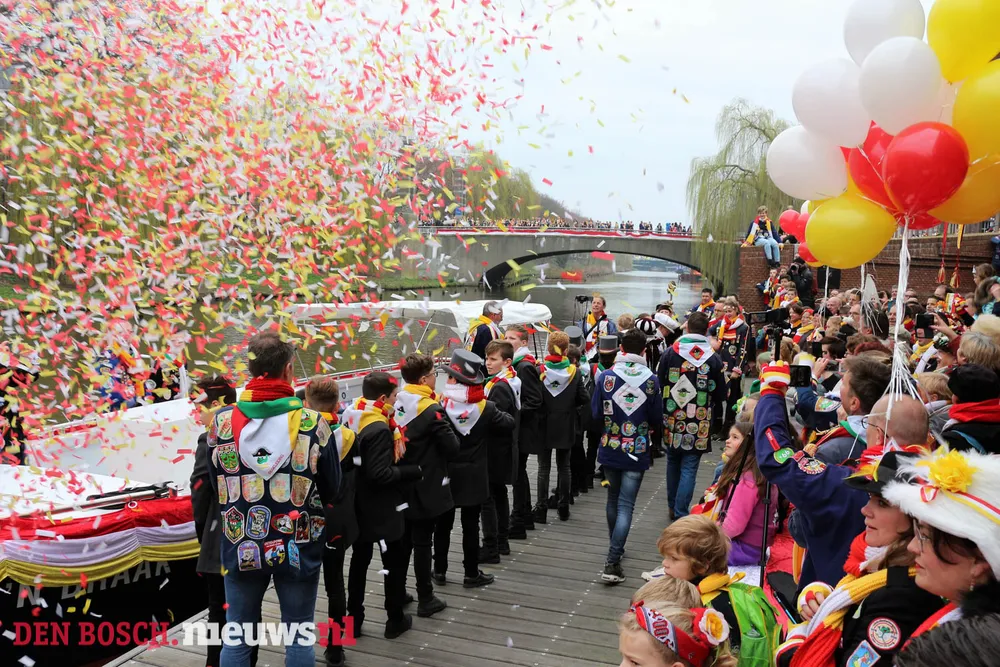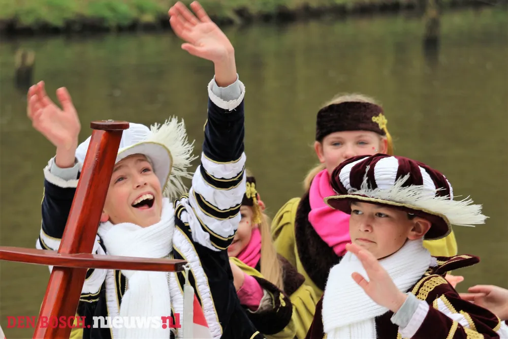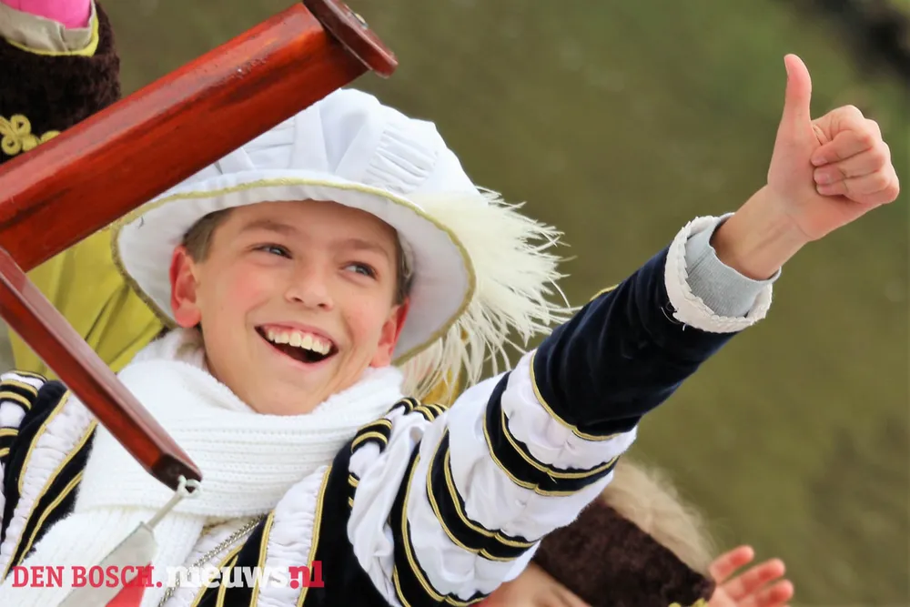 Vanmorgen kwam de nieuwe Jeugdprins van Oeteldonk Pepijn Wouters (11) aan in Den Bosch. Samen met zijn Adjudant Teun Knops kwam hij al varende Oeteldonk binnen.