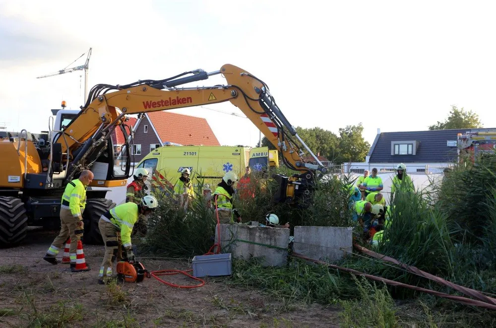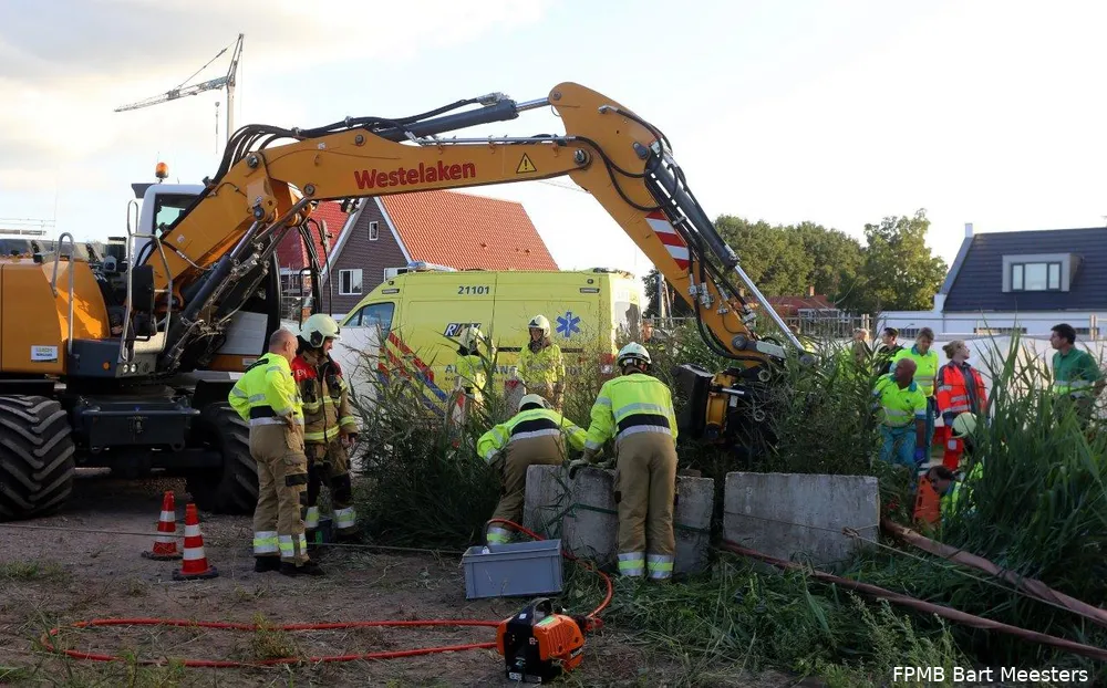 De man zat tijdens werkzaamheden vlakbij een sloot aan de Watermunt op een kleine graafmachine, die om onduidelijke redenen kantelde en raakte bekneld Later is de minigraver met een grotere graafmachine van hem afgehaald.