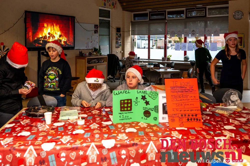 Basisschool De Wilgen in Vlijmen beet vrijdagochtend het spits af met een goed bezochte kerstmarkt. In de school werden diverse workshops georganiseerd en in de gangen en lokalen stonden kramen met een breed aanbod aan producten. Bezoekers konden er terecht voor zelfgemaakte knutselwerkjes, koekjes, wafels met slagroom en warme chocolademelk.