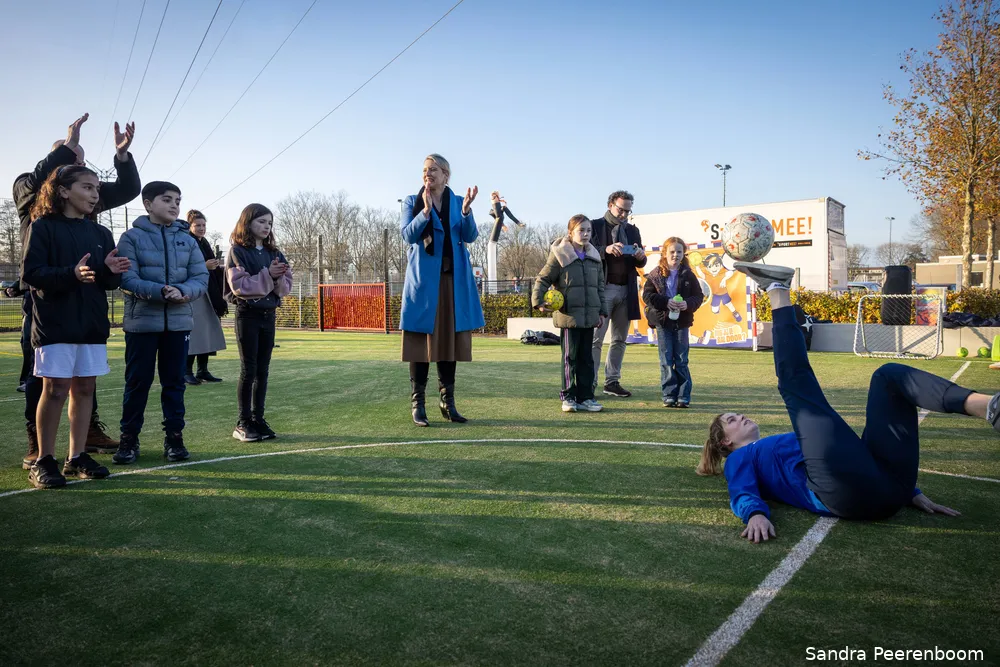 wereldkampioene freestyle voetbal Jasmijn Janssen een indrukwekkende demo. De variatie