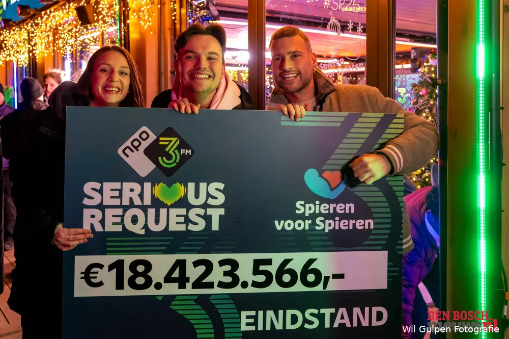 3FM Serious Request 2025 in Den Bosch werd een onvergetelijke editie. Met een geweldige inzet van dj’s, vrijwilligers, luisteraars en duizenden acties door het hele land werd niet alleen een recordbedrag opgehaald, maar ook veel bewustzijn gecreëerd voor kinderen met spierziekten. De opbrengst van €18.423.566 vormt een krachtige impuls voor onderzoek, zorg en hoop voor de toekomst.