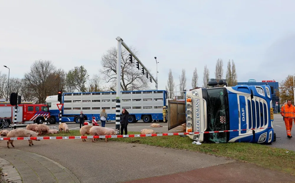De chauffeur is vol lof over de manier waarop de politie, brandweer en ambulance reageerden op het ongeluk. ,,Ze hebben mij heel goed opgevangen. En voor de varkens is al snel heel goed gezorgd. Er is een dierenarts gekomen. Maar ik heb geen idee hoeveel varkens er dood zijn of gewond.''