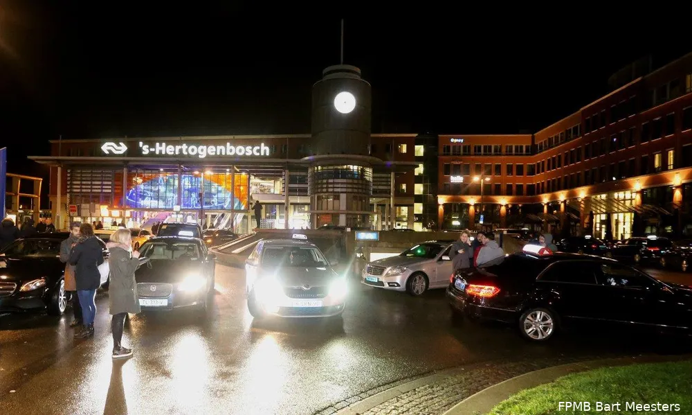 Rond half drie in de nacht vertrokken de taxichauffeurs in een lange stoet van taxi`s al toeterend vanaf het station naar de Parade in Den Bosch.