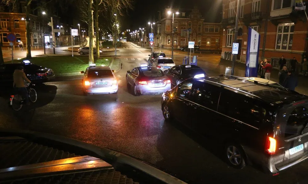 Het gaat volgens de chauffeurs zelf om zo'n 150 collega's, die samen besloten hebben de hele nacht niet te rijden. Ze verzamelen bij en rond het station, waar sommigen toeterend rondrijden. Klanten worden teleurgesteld en krijgen te horen dat ze ander vervoer moeten zoeken. Ook blokkeren de chauffeurs het plein voor het station.
