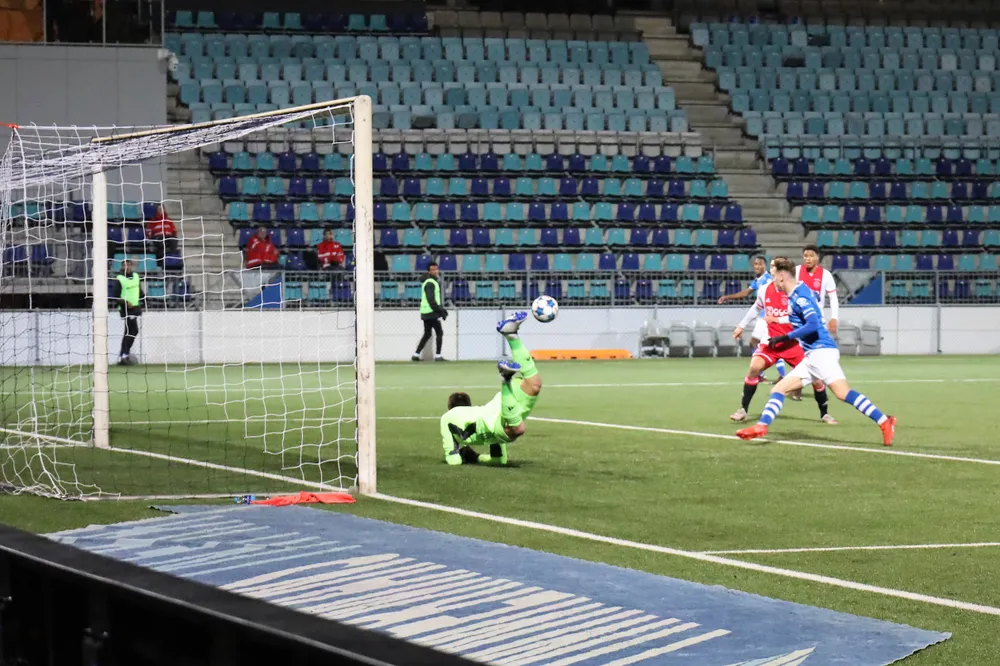 Ondanks het overwicht van Jong Ajax liet Den Bosch wel degelijk van zich horen. Adrien Bongiovanni had in de twaalfde minuut de aansluitingstreffer op zijn schoen. De Belg schoot oog-in-oog met keeper Kotarski de bal tegen de voeten van de Poolse doelman. Nog geen vijf minuten later was het dezelfde Bongiovanni die met een knal van afstand tegen de paal voor opwinding zorgde. Tot een Bosch’ doelpunt voor rust zou het niet meer komen.